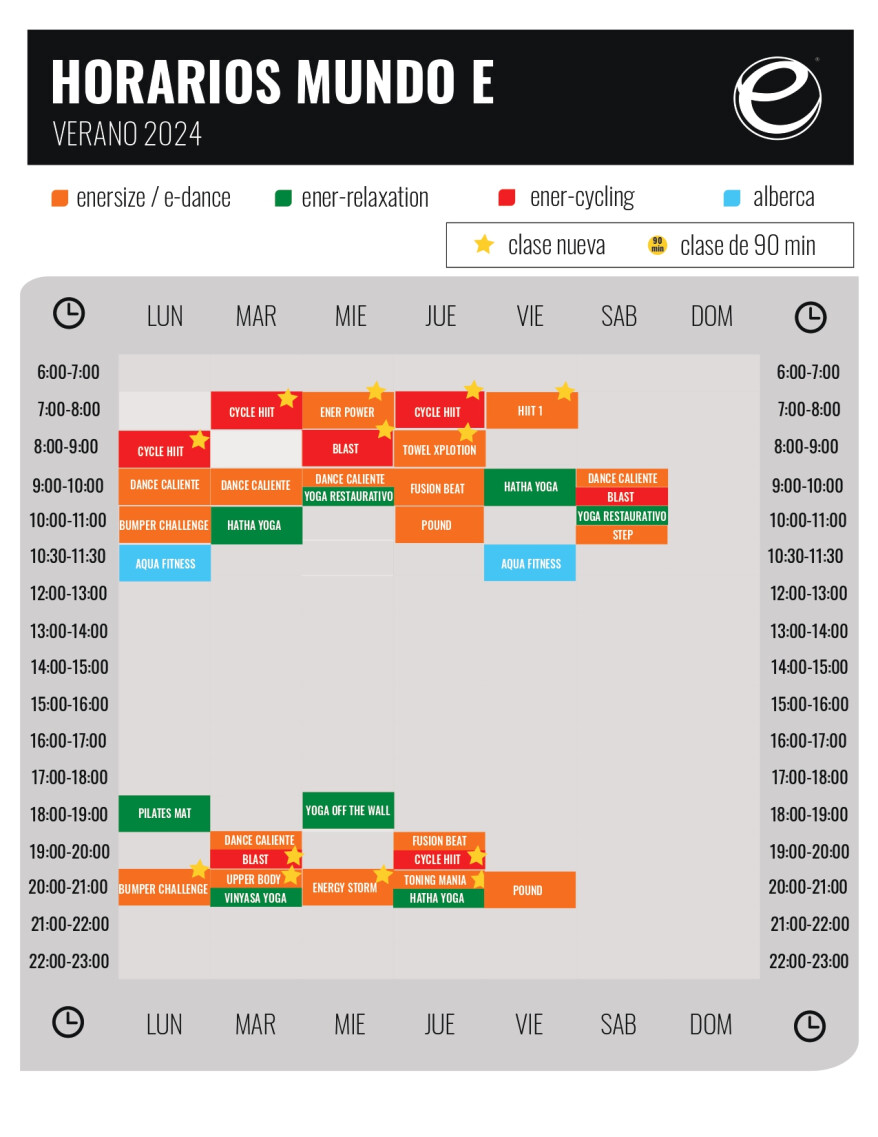 Sedes de Energy FitnessEn Energy Fitness Mundo E se ofrecen actividades como Gimnasia Acuática, Ritmos latinos, Entrenamiento funcional, Pilates Mat, Cycle, Hatha Yoga, Yoga, Yoga Ashtanga, Musculación, HIIT y Cardio.