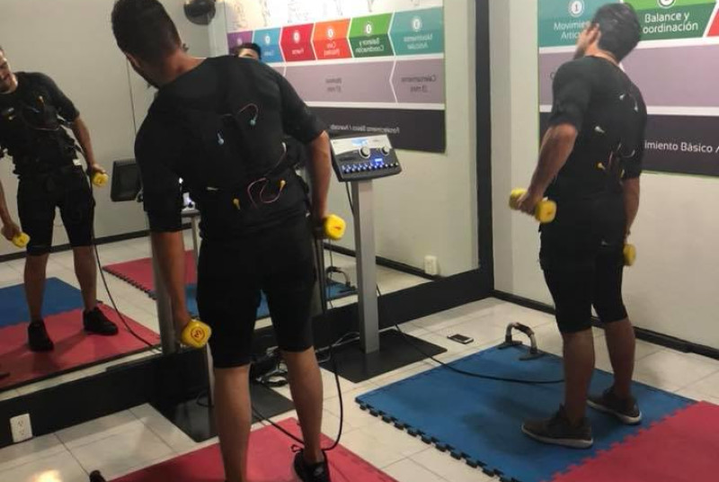 Electro-estimulación muscular (EMS). Con 20 minutos de ejercicio en TecFit te ayuda a: incrementar tu actividad física, controlar tu peso, eliminar celulitis, reducir dolores articulares, generar hipertrofia muscular y mejorar tu fitness.